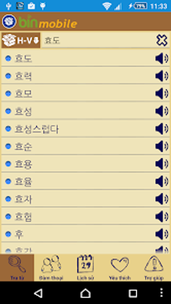 사전 기능 외에도, Bin Dictionary는 "한국어-베트남어 대화"라는 독특한 기능을 제공합니다. 이 기능을 통해 습관, 여행, 음식, 일상 대화 및 동물 등 다양한 주제에 대한 70가지 다른 대화를 통해 말하기 기술을 향상시킬 수 있습니다. 소리 아이콘을 클릭하여 단어의 발음을 들을 수 있으므로, 말하기와 듣기 기술을 연습할 수 있습니다.